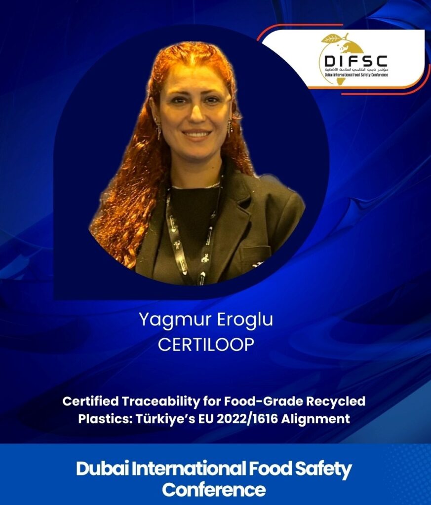 Konferans kapsamında sunulan bildiride, gıda ile temas eden geri dönüştürülmüş plastiklerde izlenebilirliğin önemi, zincir boyunca güvenilir belgelendirme gereklilikleri ve AB mevzuatıyla uyumlu sertifikasyon yaklaşımları ele alındı. CERTILOOP’un, EN 15343 ve ISO 22095 esaslı izlenebilirlik belgelendirmesi sunan, dünyada akredite yalnızca iki programdan biri olduğu vurgulanarak, bu yetkinliğin Körfez ülkelerinde gelişmekte olan mevzuat altyapısı ve uluslararası ticaret gereklilikleri açısından kritik bir rol üstlendiği ifade edildi.